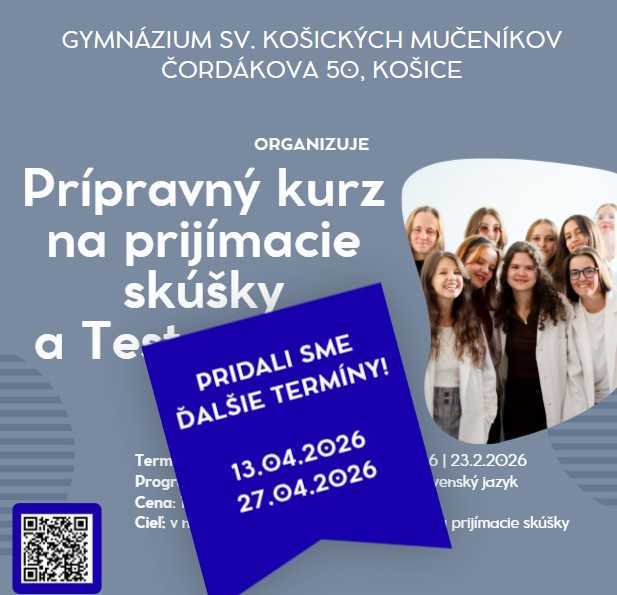 Na základe záujmu o ďalšie termíny Prípravného kurzu na prijímacie skúšky 2026 pridávame dva termíny: 13.04.2026 a 27.04.2026 so začiatkom o...