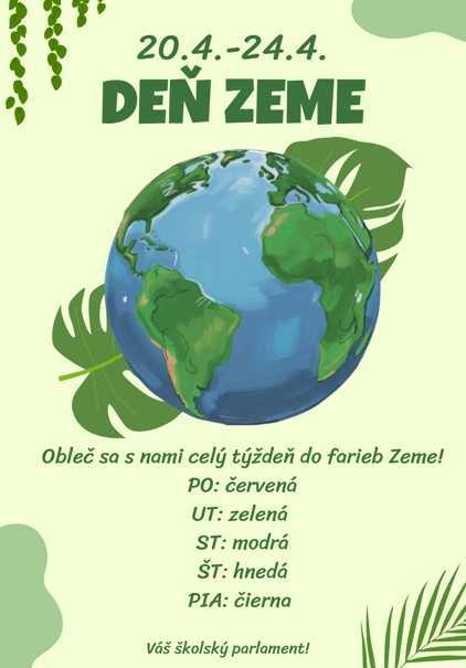 Od pondelka do piatka (20.–24.4.) sa obleč do farieb Zeme a ukáž, že ti na našej planéte záleží 🌱