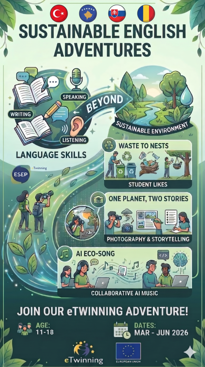 V projekte sa žiaci zdokonalia v angličtine a zároveň pomôžu prírode. Pozrieme sa na environmentálne problémy a krásy prírody v našich mestách. Študenti z rôznych krajín budú spolupracovať, hľadať riešenia a vykonávať skutočné aktivity na ochranu našej planéty.