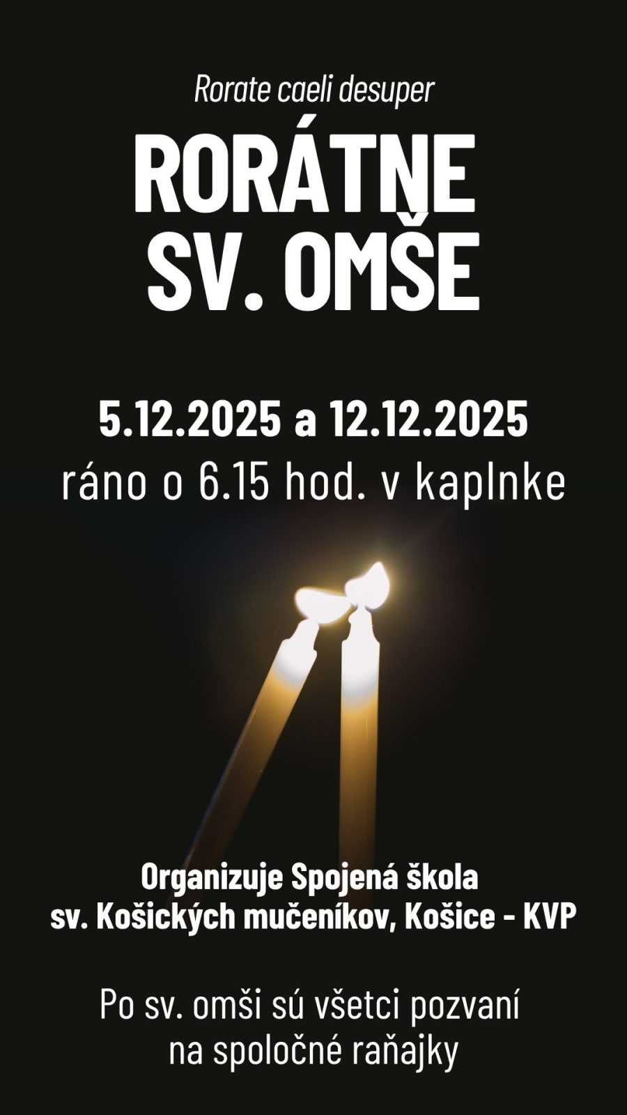 Rorátne sv. omše – pozvánka Date 6. novembra 2025 Spojená škola sv. Košických mučeníkov Vás pozýva na Rorátne sväté omše. Zdieľať: gym Predchádzajúce Viazanie adventných vencov 6. novembra 2025 Nasledujúce Adventná duchovná obnova pre rodičov | 7.12.2025 7. novembra 2025 Môže sa vám páčiť Letná prevádzka MŠ 17. apríla 2026 Zápis do MŠ 13. apríla 2026 Veľkonočný pozdrav 1. apríla 2026