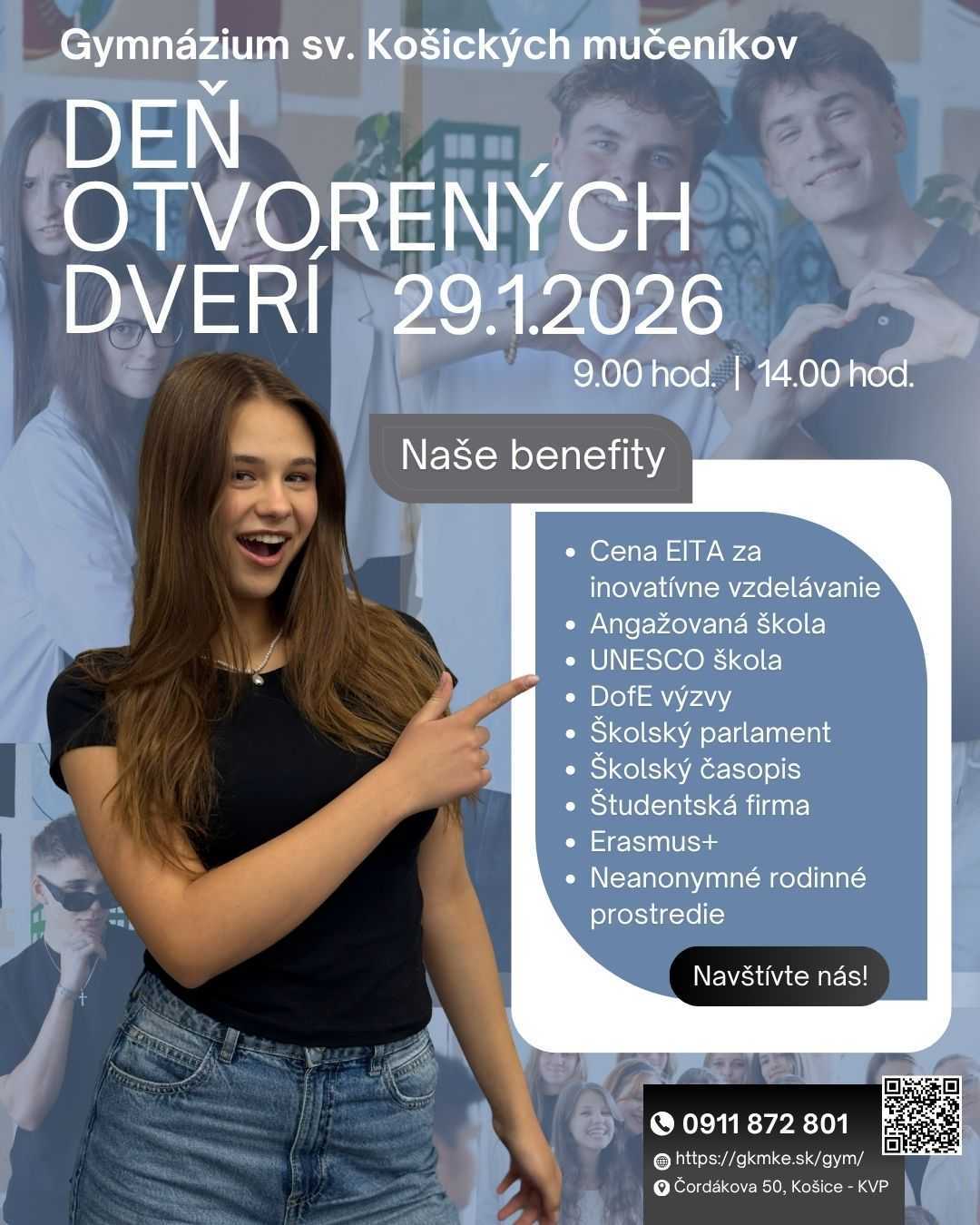 Deň otvorených dverí na našom gymnáziu sa bude najbližšie konať 29. januára 2026.
