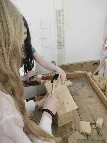 Zo starých drevených paliet žiaci na technike vyrobili vtáčie búdky pod vedením pána učiteľa Tomáša Samka.