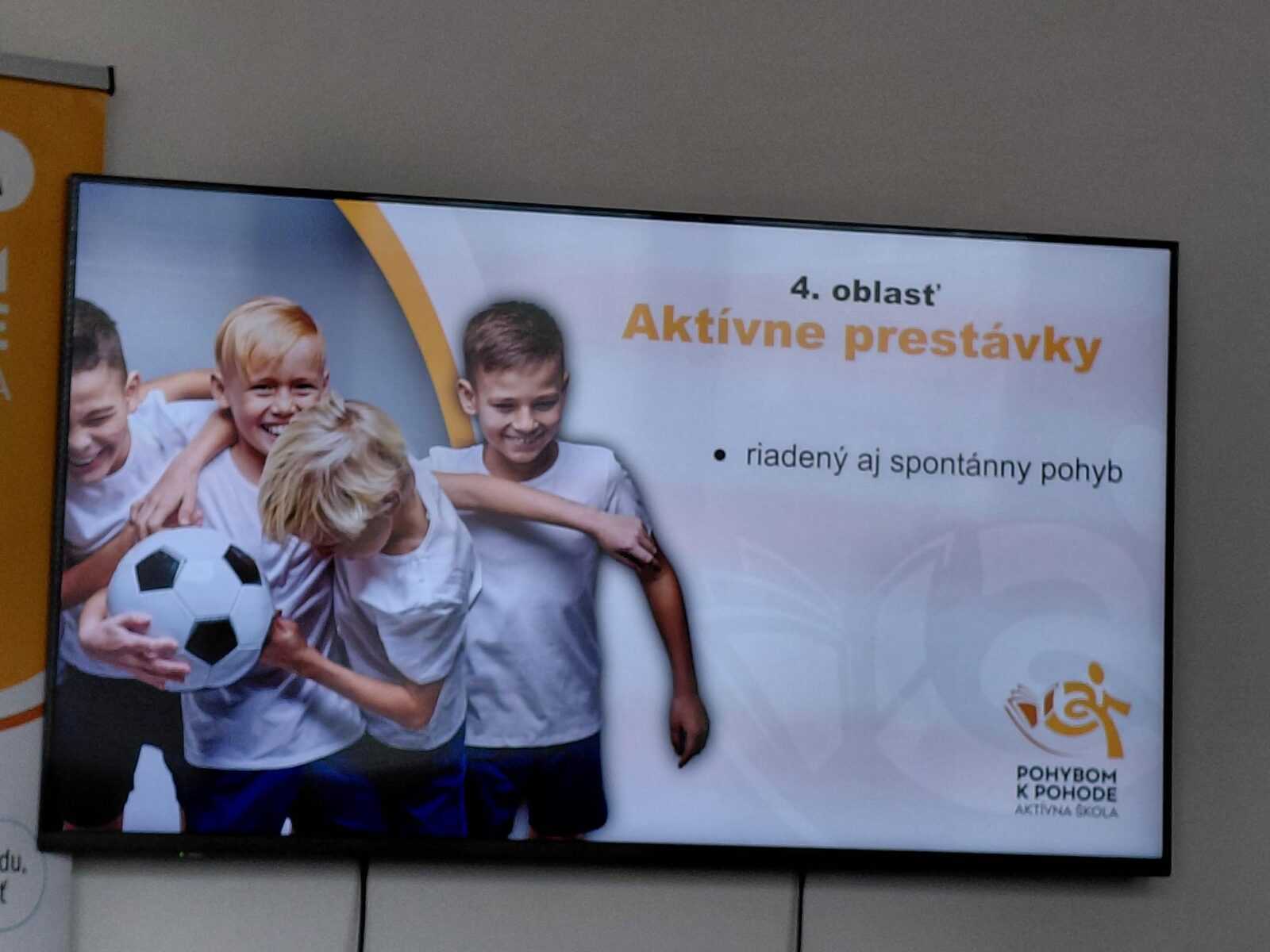 Naša škola je zapojená do národného projektu Pohybom k pohode s konceptom Aktívna škola, ktorý reaguje na alarmujúci nedostatok pohybu u detí na Slovensku a zhoršujúci sa stav ich fyzického aj duševného zdravia.