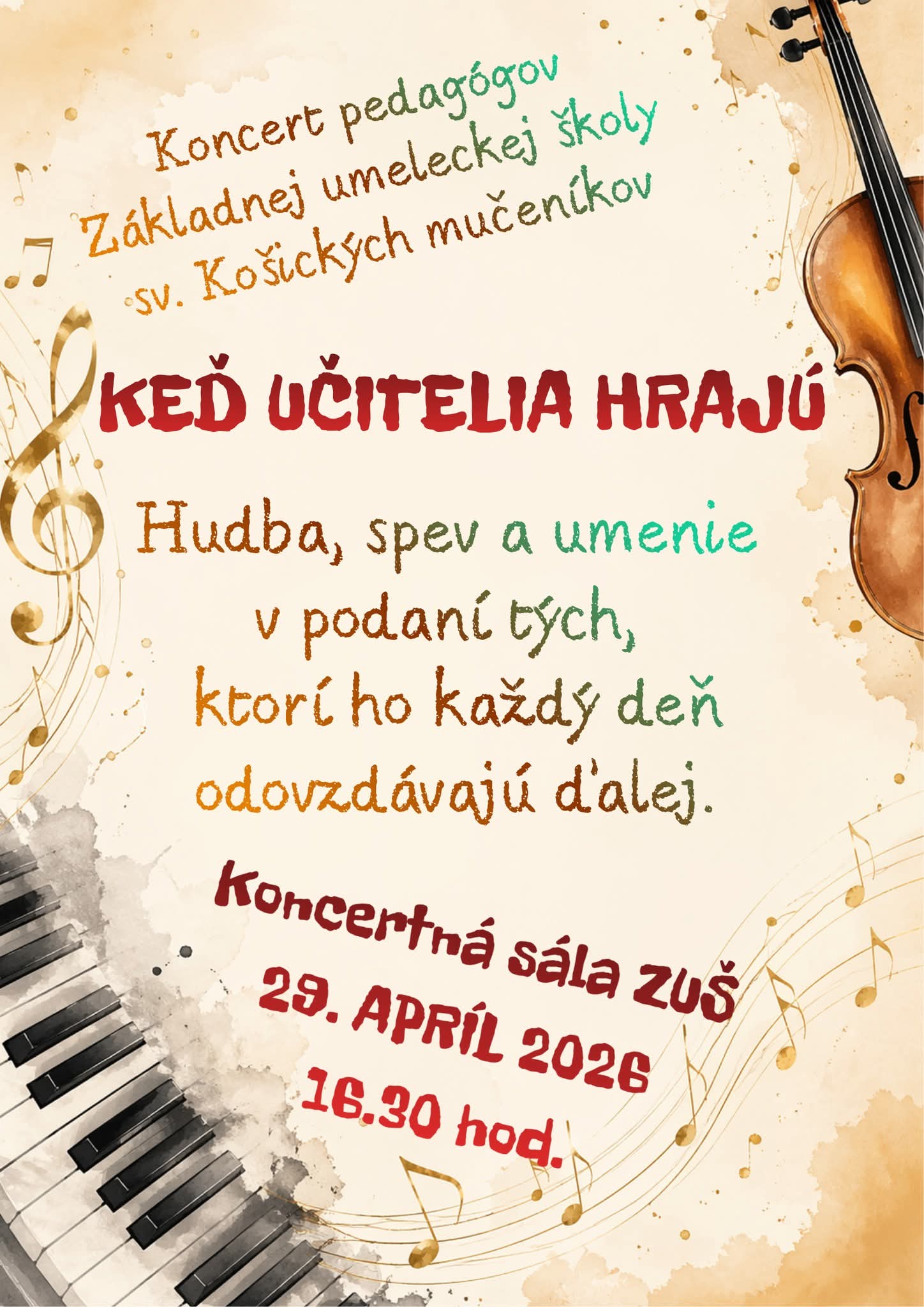 29. apríla 2026 o 16.30 hod. Vás srdečne pozývame na koncert pedagógov našej Základnej umeleckej školy.